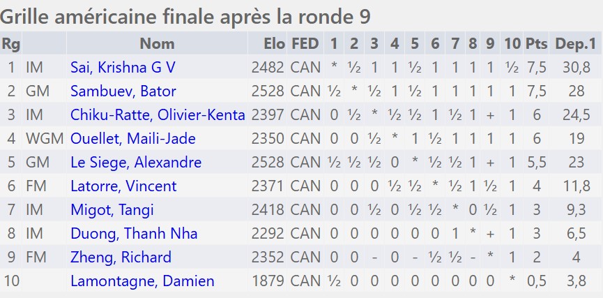 9. T.-N. Duong (MI) | 1 | 0 | 1 | 0 | 0 | 0 | 0 | 0 | X | 1 | 3 |
